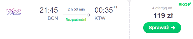 Lot powrotny proponujemy zarezerwować na 12 grudnia. Za połączenie Barcelona – Katowice zapłacimy 75 zł* (cena regularna 119 zł) REZERWUJ====>
