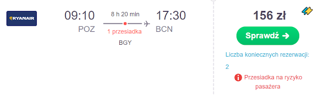 Do Hiszpanii warto wylecieć w dniu meczu – 11 grudnia. Do stolicy Katalonii wylecimy z Poznania za 156 zł REZERWUJ====> i Katowic za 139 zł* (cena regularna 185 zł) REZERWUJ====>. W obu połączeniach konieczna jest przesiadka w porcie lotniczym Mediolan Bergamo.