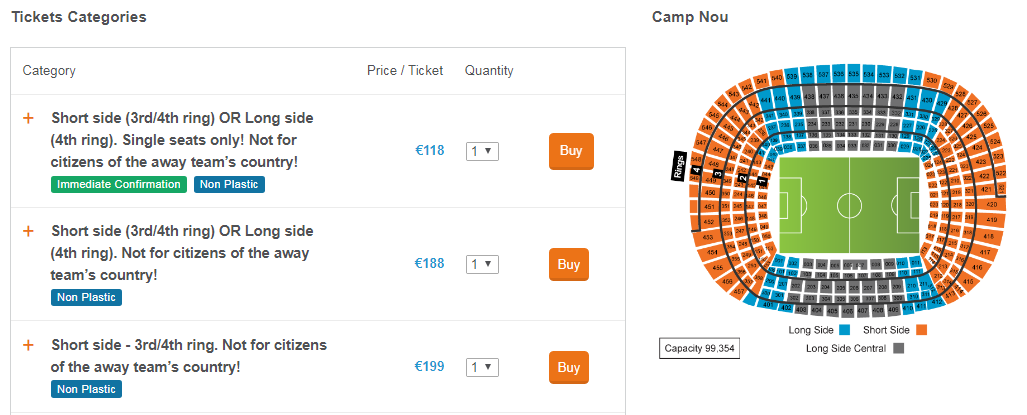 W chwili obecnej bilety na ten pojedynek można nabyć za pośrednictwem rynku wtórnego. Ceny wraz z opłatami manipulacyjnymi rozpoczynają się od 135 EUR (ok. 591 zł) REZERWUJ====>.