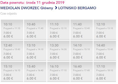 Transport na trasie lotnisko Bergamo-Mediolan możliwy jest dzięki przewoźnikowi Terravision. Za przejazd w obie zapłacimy 12 Euro (ok. 54 zł) REZERWUJ====>.