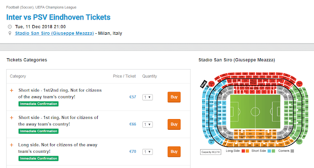Na oficjalnej stronie Interu Mediolan nie ma jeszcze informacji o sprzedaży biletów na ten mecz , wszystko wskazuje na to, że w najbliższym czasie taka informacja powinna pojawić się na klubowej stronie. Aktualnie bilety na mecz można zakupić na rynku wtórnym. Najtańsze wejściówki na to spotkanie dostępne są od 70 EUR (ok. 308 zł) REZERWUJ====>