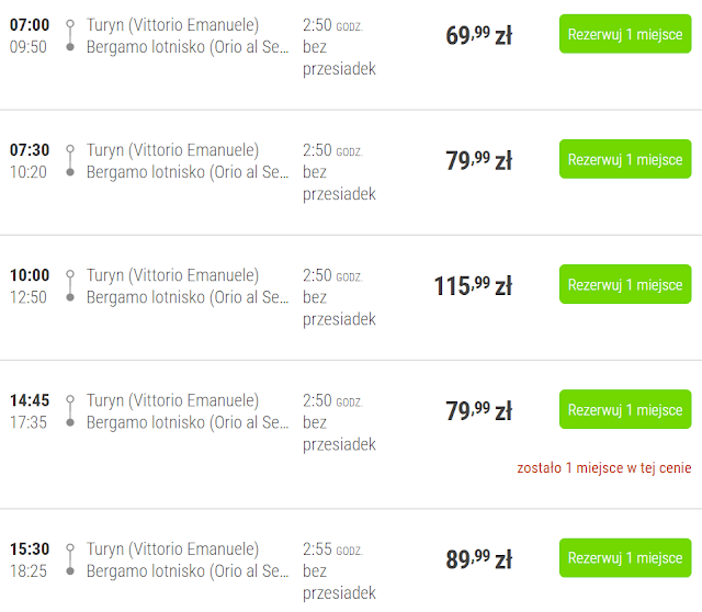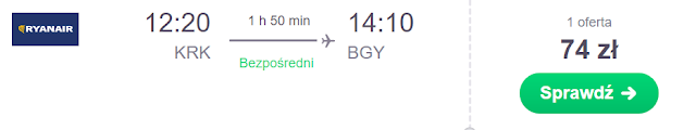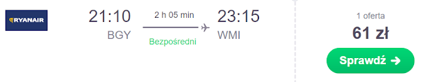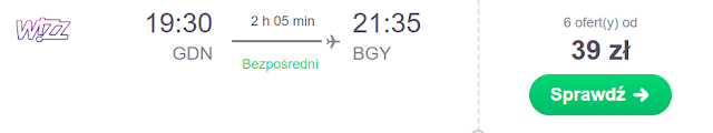 Z Mediolanu zaś tego samego dnia dostępne są połączenia do Warszawy za 39 zł* (cena regularna 59 zł) REZERWUJ====>, Katowic za 44 zł REZERWUJ====> oraz Warszawy Modlin za 61 zł REZERWUJ====>.