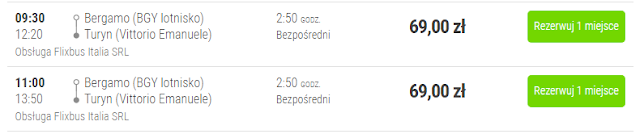 Z Turynu na lotnisko w Bergamo dostaniemy się liniami Flixbus. Cena za kurs to 69 zł REZERWUJ====>