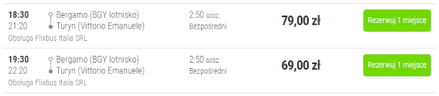 Z Turynu na lotnisko w Bergamo dostaniemy się liniami Flixbus. Cena za kurs to 69 zł REZERWUJ====>