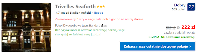 Inną opcją może być Trivelles Seaforth. Tutaj pobyt kosztuje 162 zł za jedną oraz 222 zł (111 zł os./noc) za dwie osoby.
