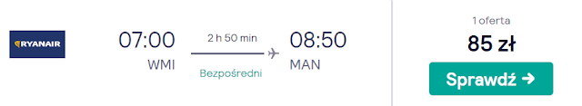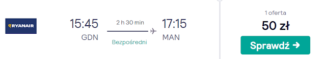 Inną możliwością jest wylot tego samego dnia do Manchesteru z Gdańska za 50 zł REZERWUJ====> lub Warszawy Modlin za 85 zł REZERWUJ====>. Dla Krakowian pozostaje połączenie do Leeds za 179 zł REZERWUJ====>.