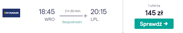 Podróż rozpoczynamy dzień przed meczem 26 listopada wylatując do Liverpoolu z Warszawy za 39 zł* (cena regularna 65 zł) REZERWUJ====>, Katowic za 59 zł* (cena regularna 89 zł) REZERWUJ====> oraz Wrocławia za 145 zł REZERWUJ====>.