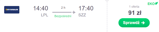 Inną opcją pozostaje wylot z Liverpoolu, do którego dojedziemy National Express za 5,20 GBP (ok. 25 zł). Do Szczecina dotrzemy za 91 zł REZERWUJ====>.