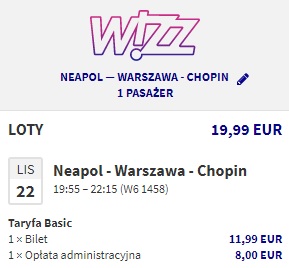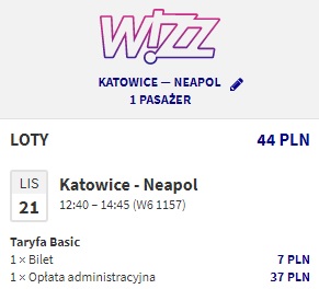 Do Neapolu możemy lecieć dzień przed meczem (20.11) z Wrocławia linią Ryanair (65zł) REZERWUJ====> lub w dniu meczu (21.11) z Katowic linią Wizzair (44zł*, cena regularna 89zł) REZERWUJ====>. Powrót dzień po meczu (22.11) linią Wizzair do Warszawy (19,99€* = ok. 86zł, cena regularna 29,99€ = ok. 129zł) REZERWUJ====>.