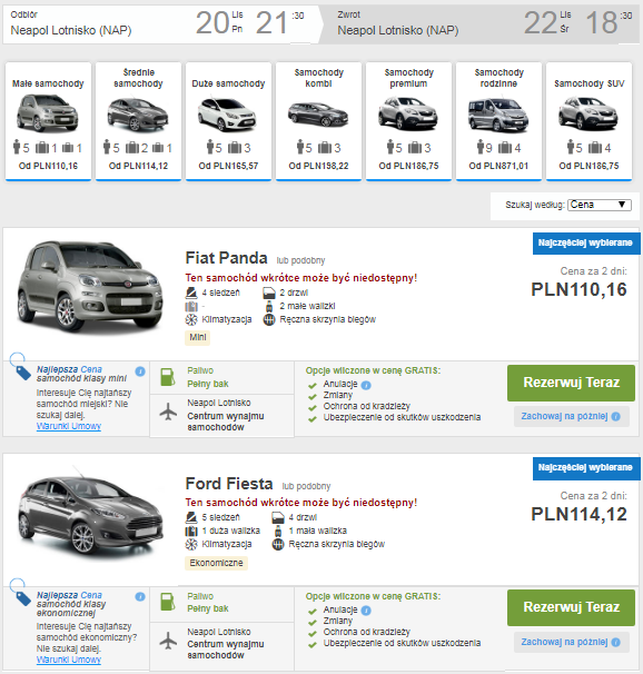Proponujemy wynajęcia auta w niskiej cenie od ok. 110,6 zł za dwa dni . W przypadku wyjazdu dwóch osób cena wynajęcia samochodu jest prawie nieodczuwalna (55 zł za osobę) . Możemy zostawić i odebrać auto pod lotniskowym terminalem REZERWUJ====>