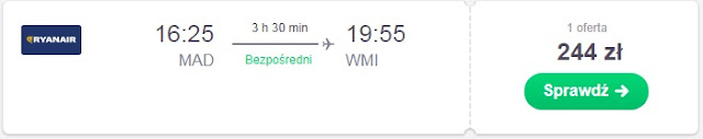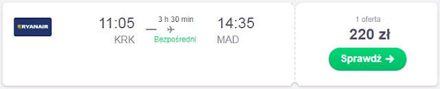 Inne możliwości to bezpośredni lot z Polski, odpowiednio z Krakowa REZERWUJ====> i Poznania REZERWUJ====>, które kosztują 220 zł.