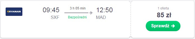 Proponujemy kilka opcji podróży do Hiszpanii w dniu meczu 11.04. Pierwsza to transport łączony składający się z przelotu z Berlina do Madrytu za 85 zł REZERWUJ====>.