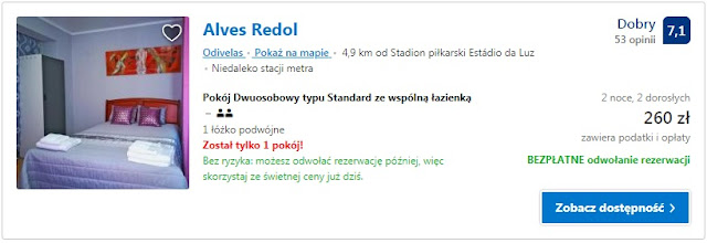 Przelot do Lizbony proponujemy dzień przed spotkaniem 22.10, bezpośrednimi połączeniami dostaniemy się wówczas z Wrocławia za 227 zł REZERWUJ====> oraz z Warszawy za 760 zł REZERWUJ====>