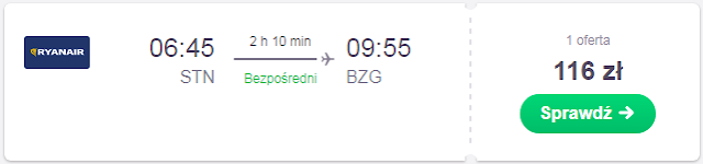 Wracamy dzień po meczu 14.09 z lotniska Londyn Stansted do Poznania za 61 zł REZERWUJ====> do Szyman (port lotniczy Olsztyn-Mazury) za 61 zł REZERWUJ====> do Bydgoszczy za 116 zł REZERWUJ====> do Gdańska za 82 zł*(cena regularna 122 zł) REZERWUJ====> a także do wielu innych portów: Warszawy, Wrocławia, Szczecina, Lublina, Katowic REZERWUJ====>