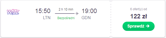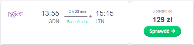 Proponujemy wylot w dniu meczu 13.09 z Gdańska do portu Londyn Luton. Cena za lot to 75 zł*(cena regularna 129 zł) REZERWUJ====>. Mamy również opcje podroży z Poznania do portu Londyn Luton. Za lot zapłacimy 123 zł*(cena regularna 185 zł) REZERWUJ====>.