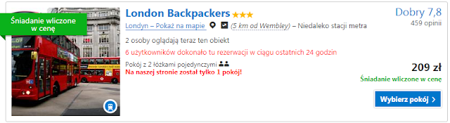 Proponujemy nocleg w London Backpackers wysoko-oceniany przez użytkowników serwisu Booking.com pokój dwuosobowy z dwoma pojedynczymi łózkami położony w odległości 5 km od Wembley to koszt 209 zł (105 zł za osobę). Druga opcja to Hollingbury Hotel gdzie za pokój dwuosobowy położony o 3 km od stadionu zapłacimy 256 zł (128 zł za osobę). W obu przypadkach śniadanie mamy wliczone w cenę noclegu.