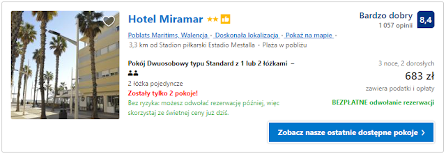 Proponujemy wylot do Valencii dwa dni przed meczem (poniedziałek 25.11) z Warszawy za 133 zł REZERWUJ====>.