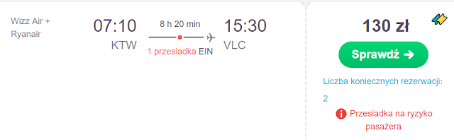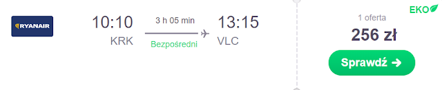Do Walencji proponujemy wylecieć w dniu spotkania – 12 grudnia. Do Hiszpanii dolecimy z Katowic (z przesiadką w Eindhoven) za 104 zł* (cena regularna 130 zł) REZERWUJ====> lub bezpośrednio z Krakowa za 256 zł REZERWUJ====>.