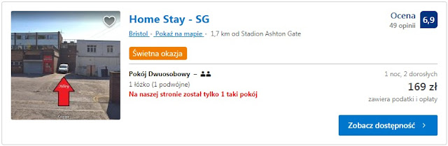 Tradycyjnie w przypadku naszych propozycji dorzucamy również dwie opcje noclegowe na pobyt, tym razem bardzo blisko Ashton Gate. Na jedną dobę zatrzymamy się np. w Home Stay – SG za 169 zł (85 zł/os/doba) oraz w The Town & Country Lodge za 259 zł (130 zł/os/doba).