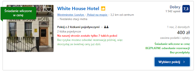 Drugim wyborem jest White House Hotel, znajdujący się już zdecydowanie bliżej centrum miasta. Pobyt w tym obiekcie to koszt 400 zł za 1-2 osoby, a w cenę noclegu również wliczone jest śniadanie.