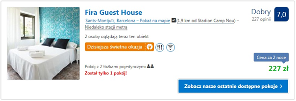 Pobyt proponujemy w dwóch miejscach nieopodal Camp Nou i centrum miasta. Zarówno w Fira Guest House, jak i Hostal Europa dwie noce dla dwóch osób to koszt 227 zł (ok. 57 zł/os/noc).