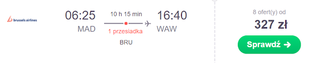 Lot powrotny do kraju rezerwujemy na 28 lutego. Do Warszawy Modlin (z przesiadką w Brukseli Charleroi) wrócimy za 313 zł REZERWUJ====>, natomiast do Warszawy (z przesiadką w Brukseli) dotrzemy za 327 zł REZERWUJ====>.