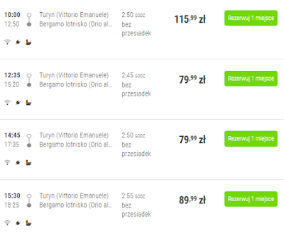 Z lotniska w Bergamo do Turynu dotrzemy Flixbusem, a za przejazd w dwie strony zapłacimy od 160 zł REZERWUJ====>.