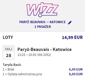 Do Paryża lecimy dzień przed meczem w piątek (26.05) linią Wizzair z Gdańska. Za bilet zapłacimy 124zł* REZERWUJ=====>. Powrót dzień po meczu także linią Wizzair do Katowic (14,99€* = ok. 65zł) REZERWUJ ====> lub Poznania (24,99€* = ok. 108zł) REZERWUJ====>.