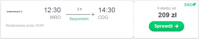 Inna opcja to lot z Wrocławia do portu lotniczego Paryż Charles de Gaulle, wówczas przelot to koszt 209 zł REZERWUJ====>