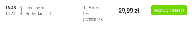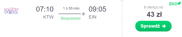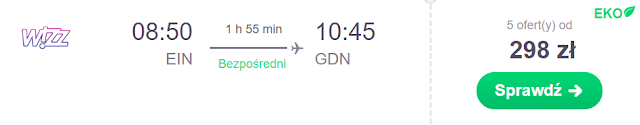 Do wyboru mamy też wylot do Eindhoven, do którego dostaniemy się z Krakowa za 39 zł REZERWUJ====>, Poznania za 39 zł* (cena regularna 59 zł) REZERWUJ====>, Katowic za 39 zł* (cena regularna 43 zł) REZERWUJ====>, Warszawy Modlin za 56 zł REZERWUJ====> oraz Gdańska za 66 zł* (cena regularna 109 zł) REZERWUJ====>.