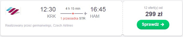 Inna opcja to lot przesiadkowy w Stuttgarcie z Krakowa za 299 zł REZERWUJ====>