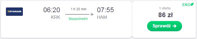 Istnieje również możliwość lotu do Hamburga dzień przed spotkaniem, wówczas z Krakowa dostaniemy się bezpośrednio za 86 zł REZERWUJ====>
