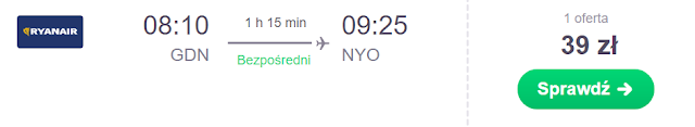 Proponujemy wylot do Sztokholmu w dniu meczu z Gdańska za 39 zł REZERWUJ====>, Warszawy Modlin za 39 zł REZERWUJ====>, Poznania za 56 zł REZERWUJ====>, Krakowa za 76 zł REZERWUJ====> oraz Warszawy za 86 zł* (cena regularna 129 zł) REZERWUJ====>.