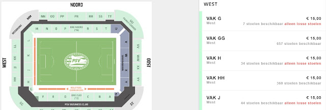 Wejściówki na spotkanie dostępne są za pośrednictwem oficjalnej strony klubowej PSV Eindhoven. Do zakupu biletów niezbędna jest darmowa rejestracja. Za najtańsze wejściówki zapłacimy 15€ (ok. 64 zł) REZERWUJ====>