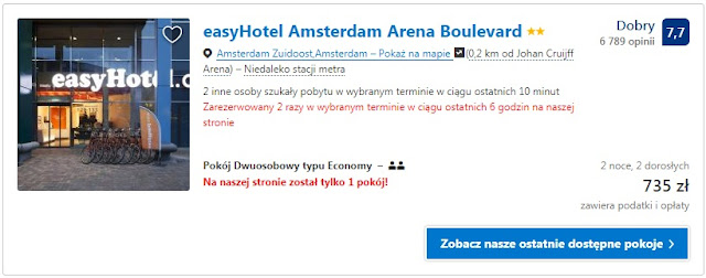 Proponujemy dwie opcje noclegowe dla dwóch osób na dwie noce w Amsterdamie, obie dotyczą obiektów położonych blisko stadionu w tym mieście. Pierwsza możliwość to pobyt w easyHotel Amsterdam Arena Boulevard za 735 zł (184 zł/os/noc). Inna opcja na nocleg podczas wyjazdu to ibis budget Amsterdam City South za 748 zł (187 zł/os/noc).
