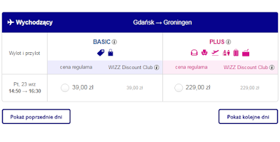 - FLIXBUSEM do Groningen za 29 zł a następnie lot WIZZ AIR do Gdańska za 39,99 EUR ~175 zł cena dla posiadaczy karty WIZZ Discount Club (bez karty 49,99 EUR ~220 zł) sprawdź TUTAJ=====>