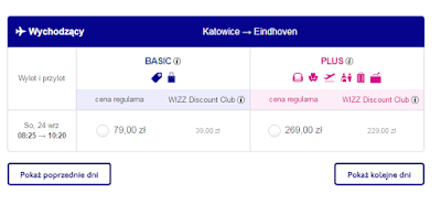Alternatywnie WIZZ AIR`em możemy polecić wyloty z Polski dzień przed meczem 23.09: