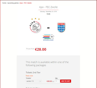 Bilety na mecz do nabycia na oficjalnej stornie Ajaxu =====>TUTAJ za 28 EUR tj ok. 123 zł