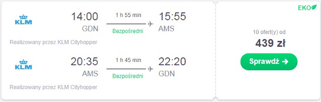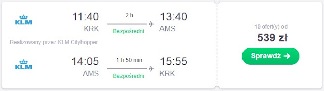 Proponujemy wykupienie przelotu w obie strony połączeniami bezpośrednimi na linii Polska-Holandia w dniach 19-21.01. Istnieją możliwości przelotu na trasach: Warszawa-Amsterdam za 398 zł REZERWUJ====>, Gdańsk-Amsterdam za 439 zł REZERWUJ====> oraz Kraków-Amsterdam za 539 zł REZERWUJ====>