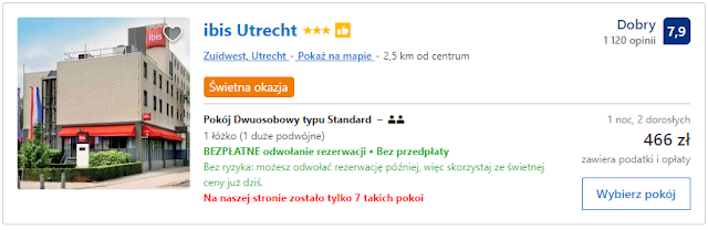 Zakwaterowanie w terminie 14-15 marca w Utrechcie nie należy do najtańszych. Jedną z cenowo najkorzystniejszych opcji będzie obiekt Bastion Hotel Utrecht, w którym za pobyt w tym właśnie terminie zapłacimy 380 zł za jedną lub dwie osoby. W drugim obiekcie – ibis Utrecht cena wzrośnie do 480 zł za pobyt.