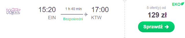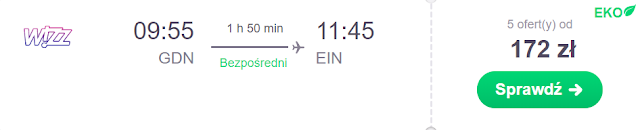 Lot powrotny planujemy na 3 grudnia także z lotniska w Eindhoven, z którego wrócimy do Warszawy Modlin za 44 zł REZERWUJ====>, Gdańska za 86 zł* (cena regularna 129 zł) REZERWUJ====>, Katowic za 107 zł (cena regularna 129 zł) REZERWUJ====> oraz Wrocławia za 150 zł* (cena regularna 189 zł) REZERWUJ====>.