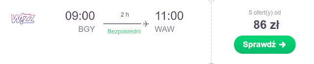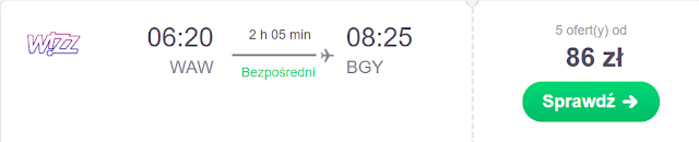Lot powrotny można zaplanować na 30 listopada. Z Mediolan Bergamo dolecimy do Warszawy za 43 zł* (cena regularna 86 zł) REZERWUJ====> i Wrocławia za 99 zł REZERWUJ====>.