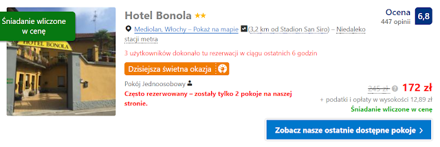 Do Lombardii można wylecieć w dniu meczu. Do portu lotniczego Mediolan Bergamo dotrzemy z Warszawy za 44 zł* (cena regularna 86 zł) REZERWUJ====> oraz Krakowa za 104 zł REZERWUJ====>.