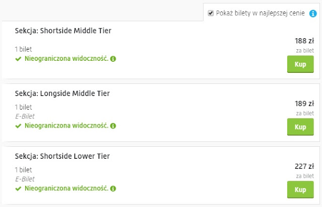 Wejściówki na spotkanie dostępne są za pośrednictwem rynku wtórnego. Za najtańsze bilety, które po zakupie otrzymamy drogą elektroniczną zapłacimy 284 zł REZERWUJ====>
