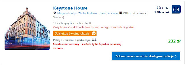 W kontekście noclegu na jedną noc dla dwóch osób proponujemy pobyt w obiektach Keystone House za 232 zł (116 zł/os/noc) oraz HSA – 129 Shoreditch za 242 zł (121 zł/os/noc).