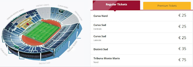 Bilety na spotkanie dostępne są za pośrednictwem oficjalnej strony internetowej AS Roma. Wejściówki można zakupić podając swoje dane, bez rejestracji, a zakupiony bilet otrzymamy drogą mailowo. Najtańsze bilety (wraz ze wszystkim opłatami) to koszt 25,75 EUR (ok. 113 zł) REZERWUJ====>