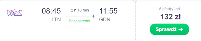Lot powrotny warto zaplanować na 30 listopada. Z lotniska Londyn Luton wrócimy do Gdańska za 95 zł* (cena regularna 132 zł) REZERWUJ====>, Wrocławia Szymanów za 97 zł* (cena regularna 131 zł) REZERWUJ====> i Wrocławia za 119 zł* (cena regularna 156 zł) REZERWUJ====>.