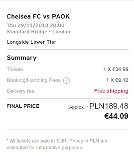 Spotkanie Ligi Europy pomiędzy Chelsea FC a PAOK Saloniki odbędzie się na Stamford Bridge w Londynie 29 listopada o godzinie 20.00 czasu lokalnego.