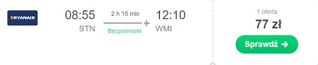 Do lotniska Londyn Stansted dolecimy z Warszawy Modlin za 58 zł REZERWUJ====>, Wrocławia za 65 zł REZERWUJ====> oraz Bydgoszczy za 125 zł REZERWUJ====> .