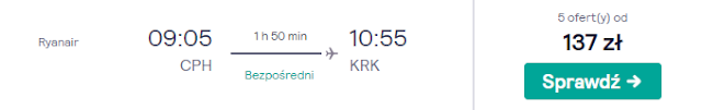 W terminie 12-13 grudnia zdecydowanie najtaniej na lotnisko w Kopenhadze dotrzemy z Gdańska, a za bilety w dwie strony zapłacimy 105 zł REZERWUJ====>. W dniu meczu możemy również wylecieć z Warszawy za 256 zł REZERWUJ====> i wrócić dzień później do Krakowa za 137 zł REZERWUJ====>.